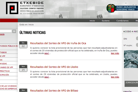 El Departamento de Vivienda Obras Públicas y Transportes del Gobierno Vasco ha reformado la página web de Etxebide con el fin de mejorar sus funcionalidades y agilizar la gestión de algunos trámites. Entre otros avances, los ciudadanos podrán efectuar su inscripción en el registro de solicitantes de vivienda protegida en la propia web de forma rápida, sencilla, y fiable (sección "Regístrate en Etxebide-Trámites con Etxebide").